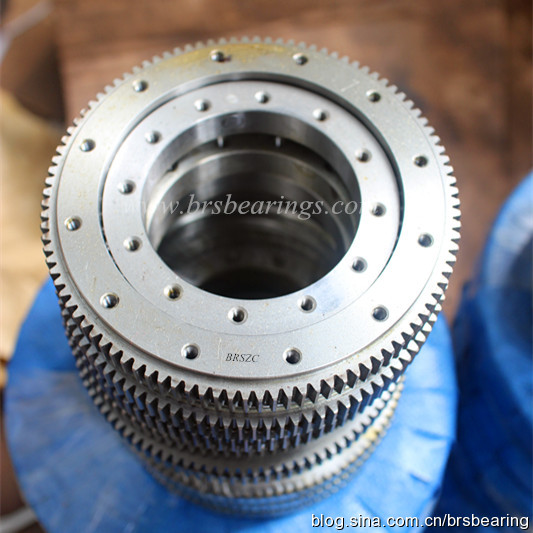 結構:四點接觸球轉盤軸承,外齒,內外圈帶安裝孔