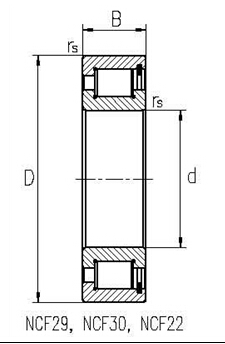 SL18型及NCF···V型滿裝圓柱滾子軸承,外圈具單擋邊,無擋邊側有鎖圈,可對機軸作單向定位,軸承內部的軸向間隙“S”保證了機軸相對于軸承箱的軸向定位移?!?/span>S”值可向本公司詢問。根據承載力大小的不同,該系列產品分別具有兩列及三列滾子的排列形式,分別用NNCF···V型和3NCF···V型表示